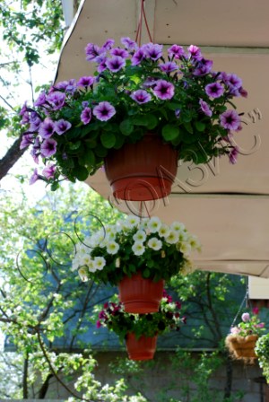 Стебли прямостоячие или стелющиеся, густоветвистые, 20-70 см высотой, округлые, зеленые. Цветки одиночные, на прочных коротких цветоножках, расположены в пазухах листьев. Количество цветков на растении может быть очень большим. Диаметр цветков 5-12 см. Весь спектр чистых окрасок, кроме зеленой, дополняется бесконечными оттенками, различными жилками и пятнами в середине цветка. Нет только петуний голубого цвета, но зато есть темно-синие и бархатно-фиолетовые. Особенно нарядны петунии с контрастными окрасками: белые звезды или белая кайма на темно-синем или красном фоне. Цветки могут быть разнообразными по форме. Края лепестков гладкие, бахромчатые или гофрированные. Вся нарядность цветка петунии, конечно, собрана в махровых цветках, от них просто нельзя оторвать глаз, но они и самые капризные в выращивании. У многих сортов и гибридов по основному фону лепестков выделяется более темное жилкование, которое становится интенсивнее к центру цветка.